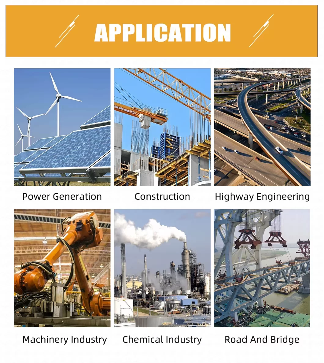 il est couramment utilisé dans la construction de ponts, les grandes infrastructures et les supports structurels, où sa durabilité et sa capacité de charge sont essentielles pour la stabilité dans des environnements difficiles.